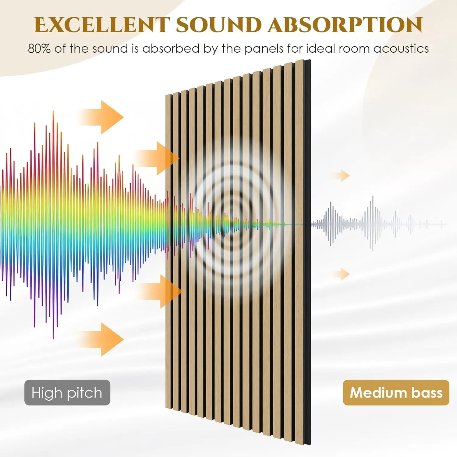 Painéis acústicos madeira 120 x 60 x 2,1 cm conjunto de 4, painéis de parede 3D, aparência de madeira - revestimento de parede absorvente de som, painéis acústicos - TopDealBox