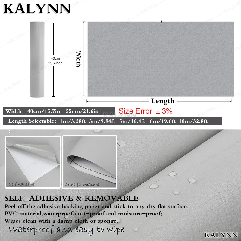 Papel de parede à prova d'água de cor sólida, autoadesivo, preto, branco, guarda-roupa, cozinha, móveis foscos, largura personalizável - TopDealBox