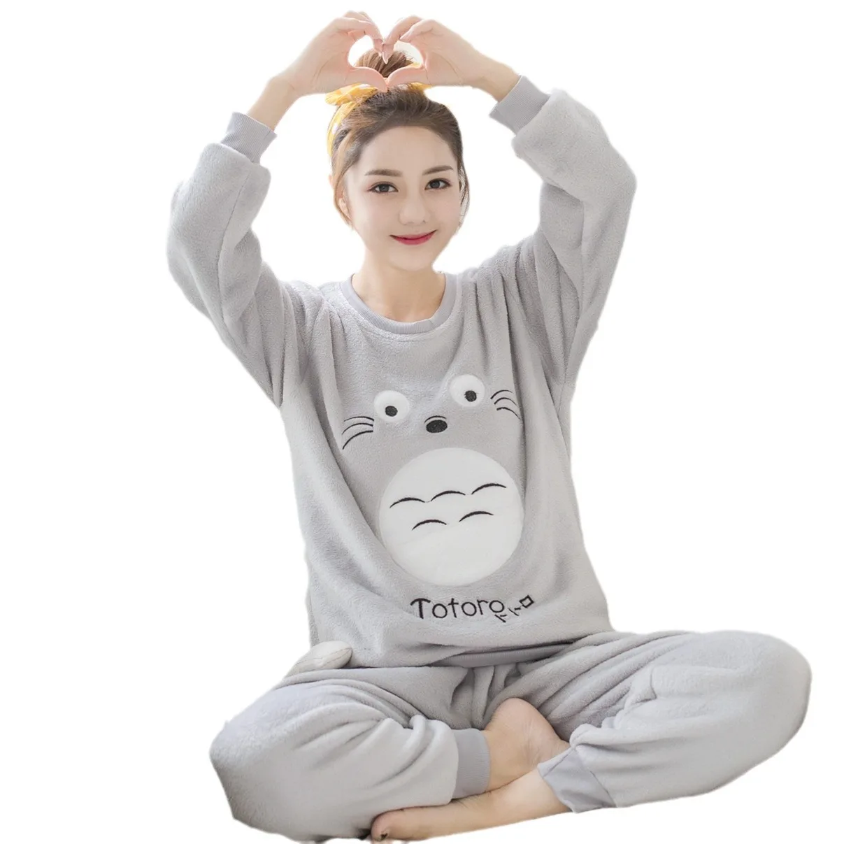 Pijamas femininos em torno do pescoço engrossado flanela casa conjunto de roupas dos desenhos animados estampado estilo coreano inverno pijamas sazonais - TopDealBox