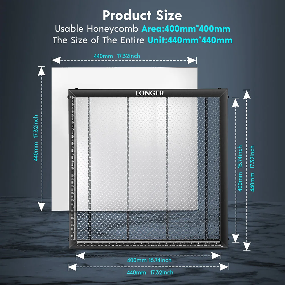 ♡Visualização rápidaCama laser mais longa, mesa de trabalho em favo de mel para máquina de corte e gravador a laser CO2 400 mm * 400 mm * 22 mm40.76 EUREUR 129.60Quente★★★★★5.0
