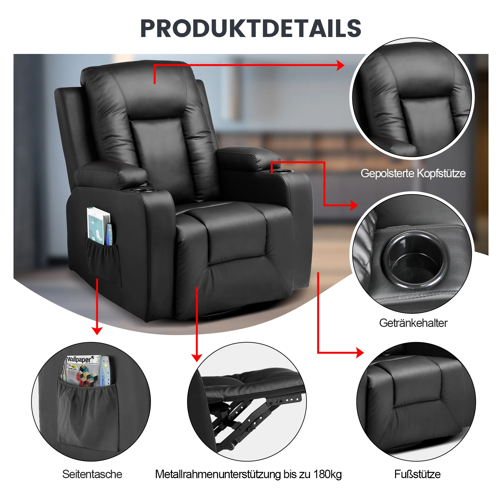 ♡Visualização rápidaCOMHOMA-TV Relax Poltrona com Função Reclinável, Relaxante e Deitado, LED, Função de Massagem, Sala e Sala de Dormir347.01 EUREUR 744.78Quente★★★★★★4.6