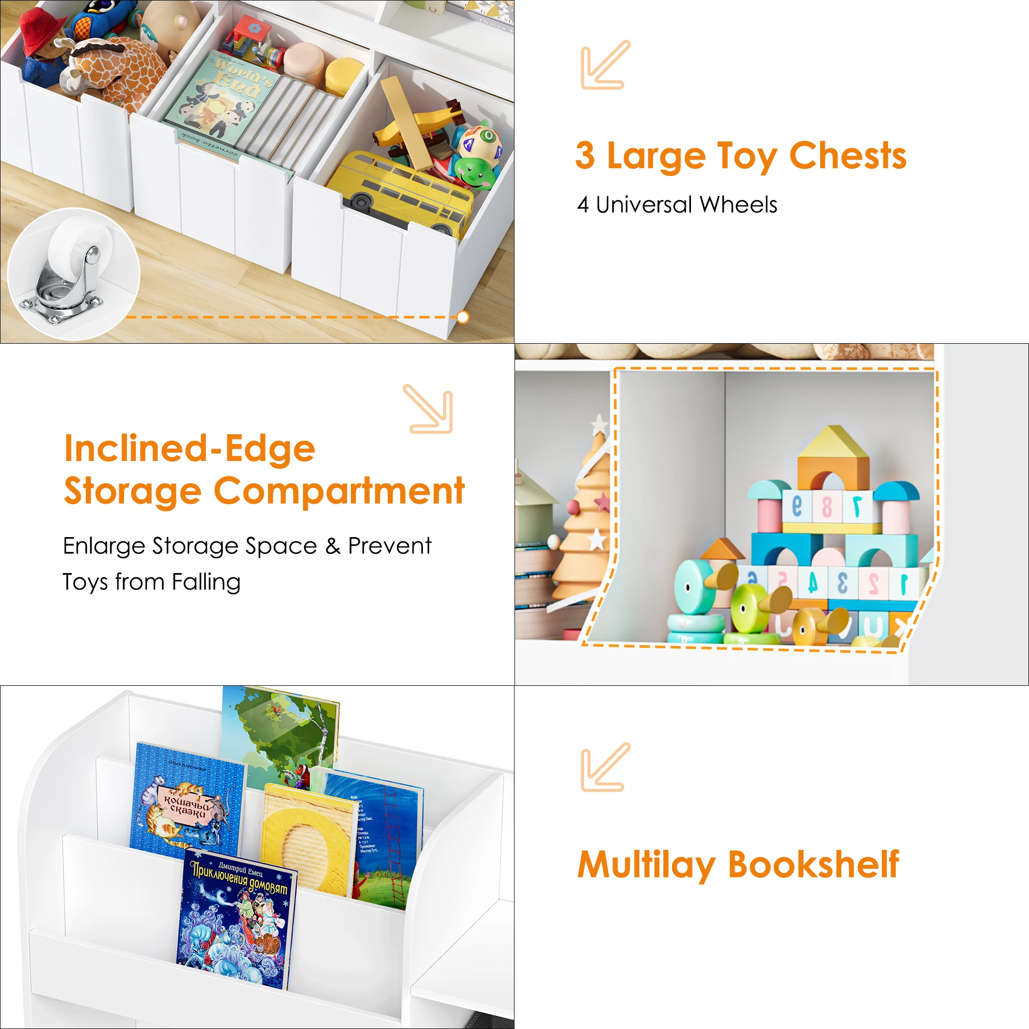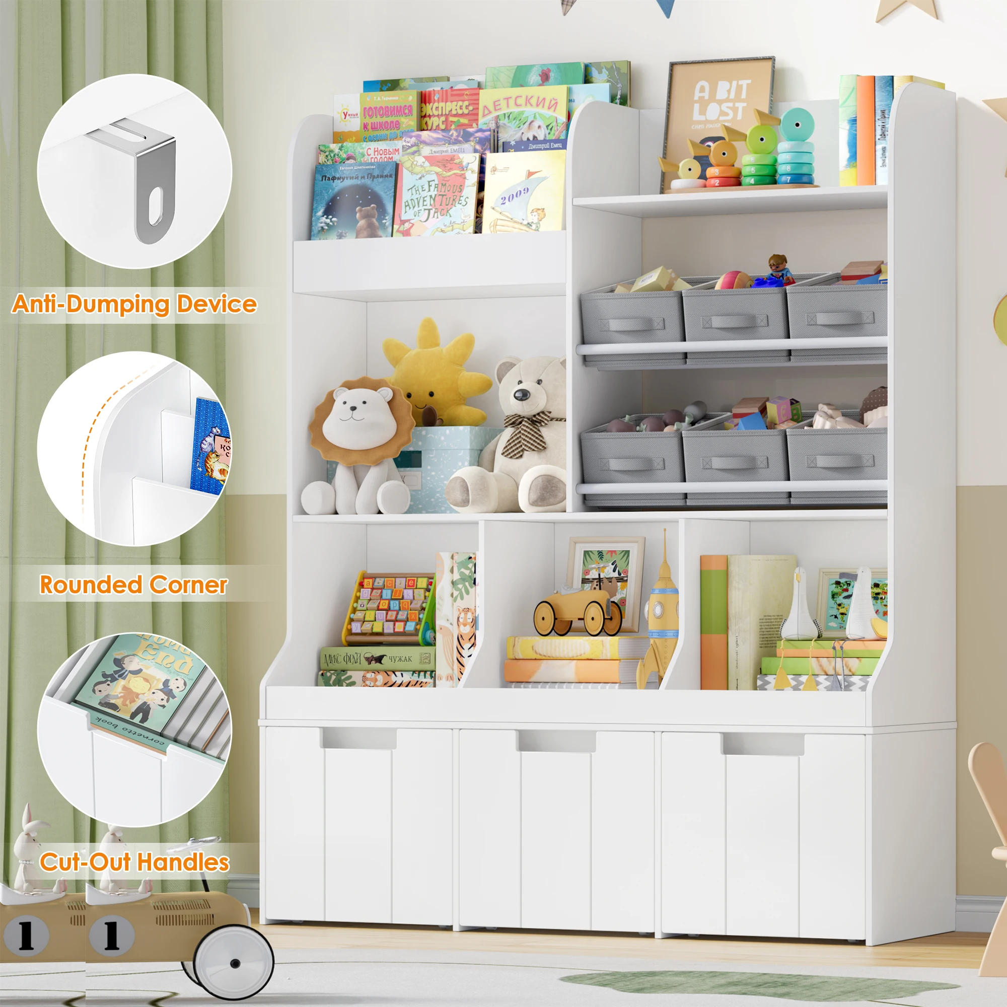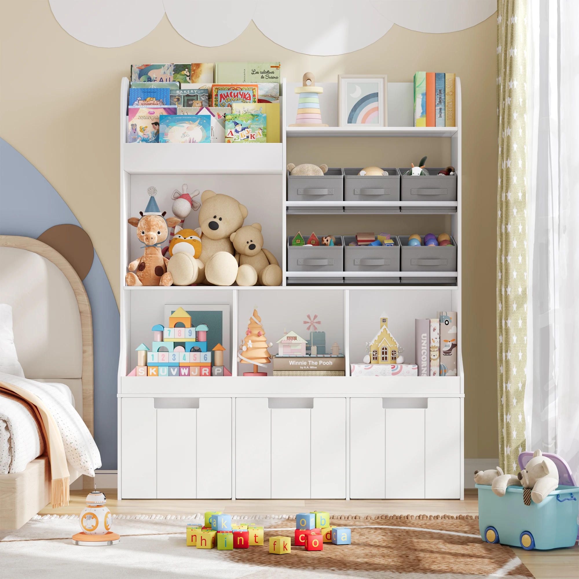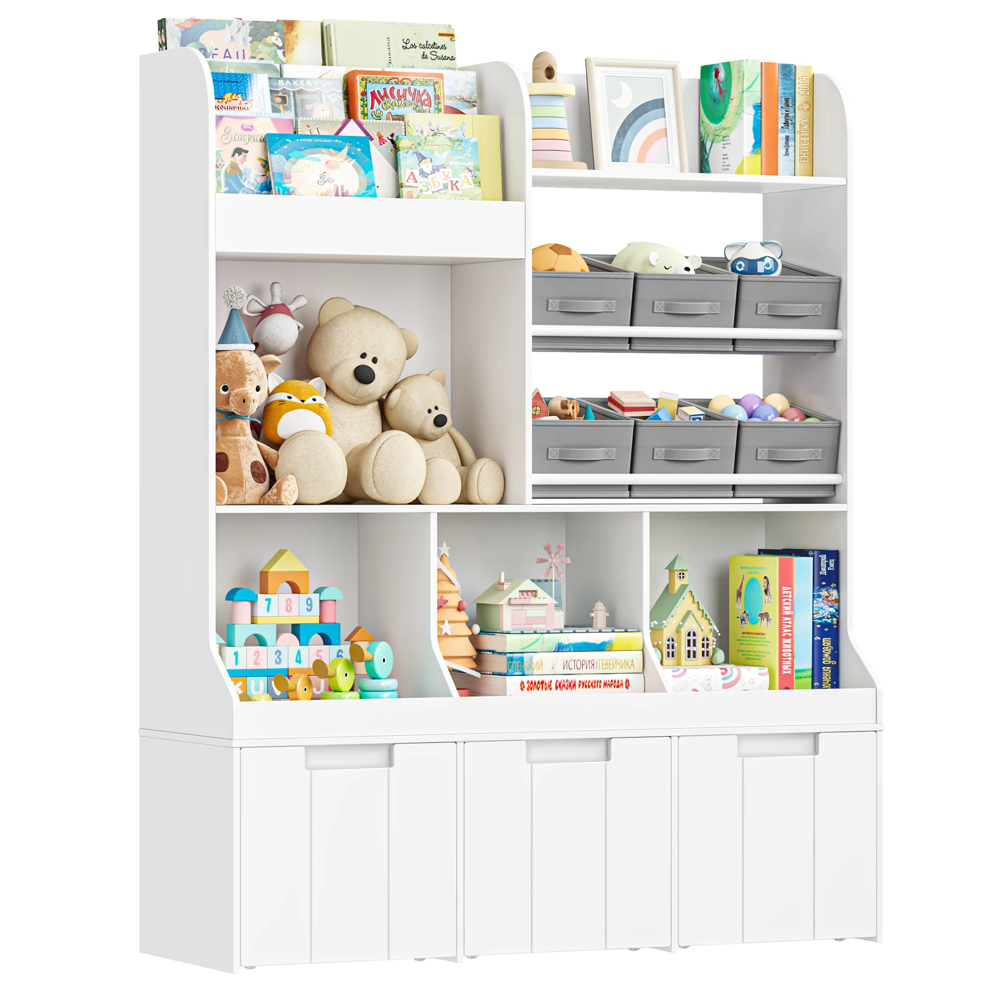 Prateleira infantil com boxe sobre rodas, estante infantil com 4 compartimentos de armazenamento e 6 gavetas de pano, prateleira para brinquedos Quarto infantil para | Melhor Preço at TopDealBox