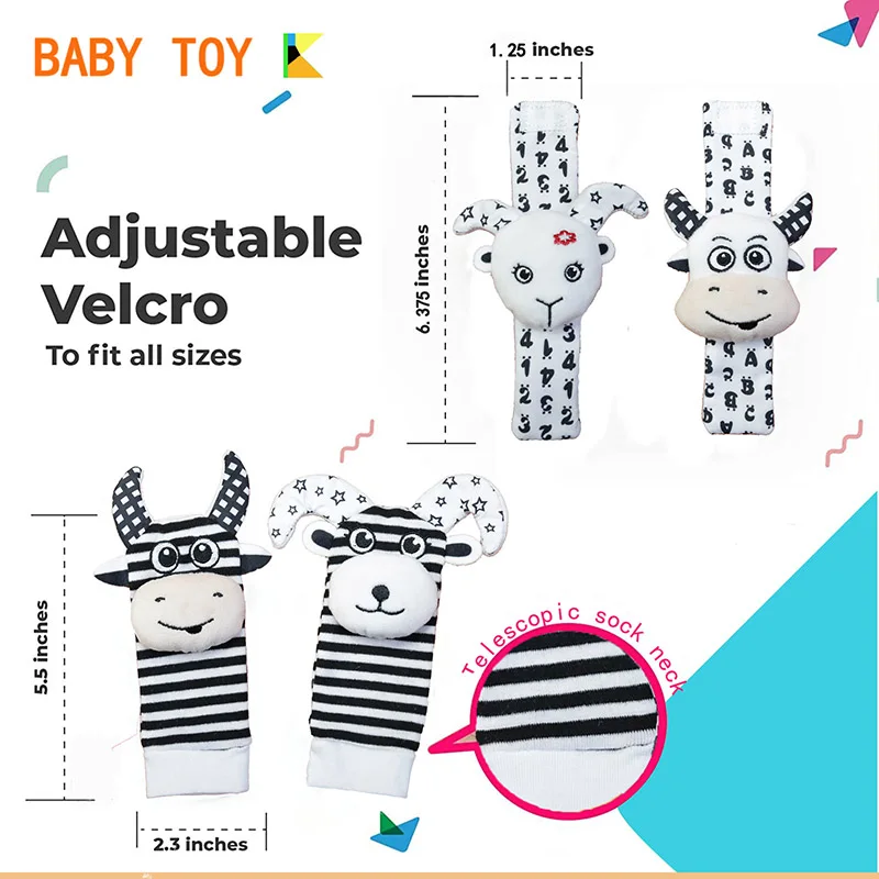 Início > Brinquedos e hobbies > Brinquedos para crianças e bebês Preto e branco alto contraste brinquedos do bebê 0 12 meses tempo de barriga brinquedos sensoriais chocalho do bebê meias alça de pulso chocalhos brinquedo montessori Informações de envio