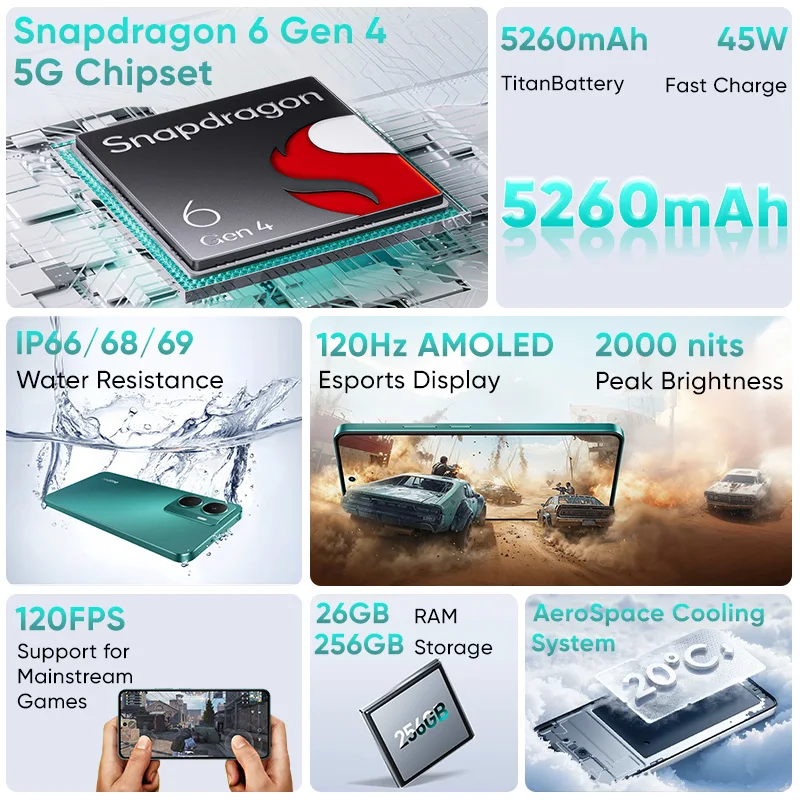 Realme p3 5g smartphone android ai snapdragon 6 gen 4 6.67 ''120hz display amoled 5260mah bateria 50mp ai câmera versão global - TopDealBox