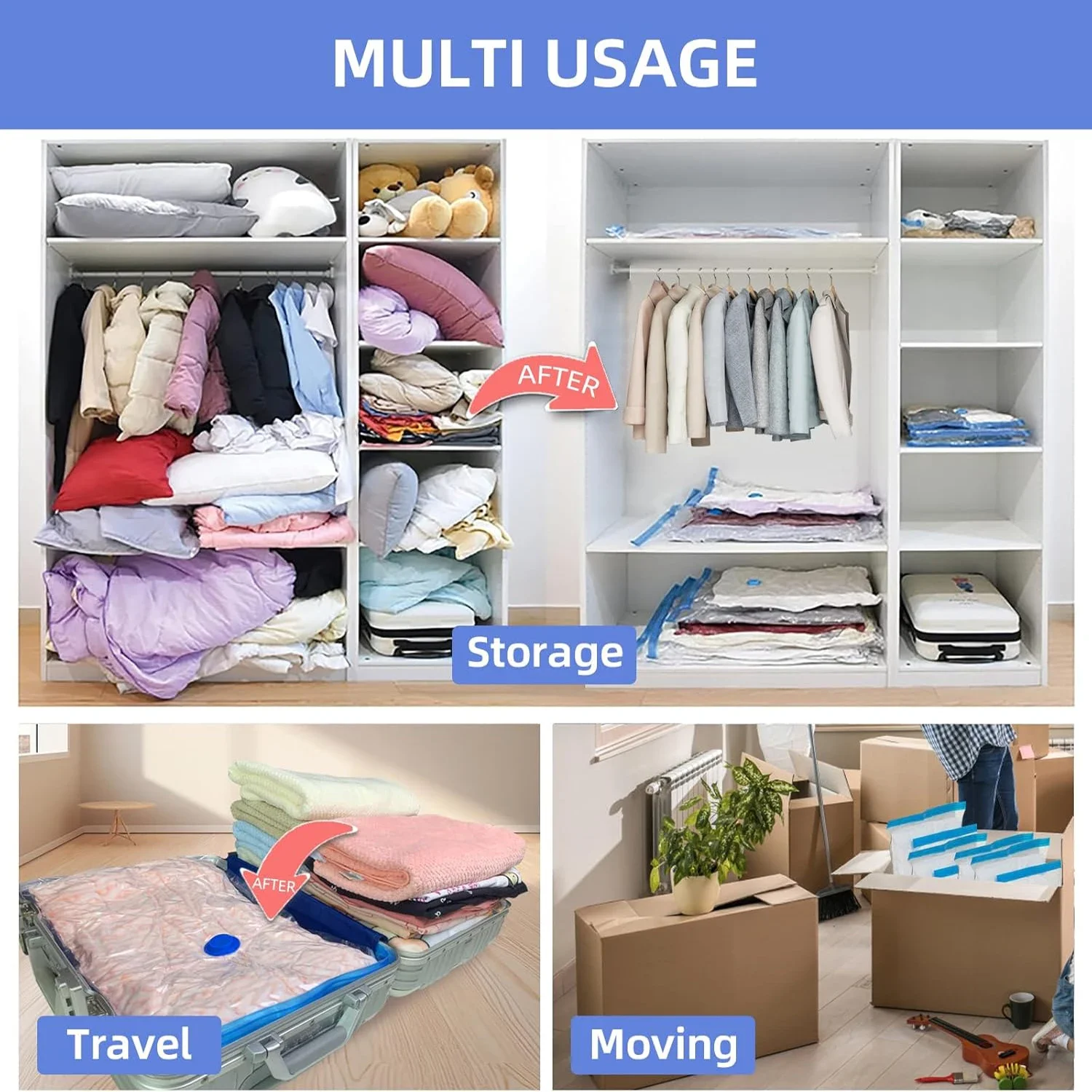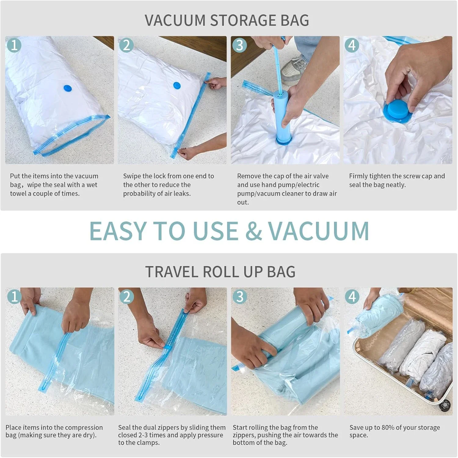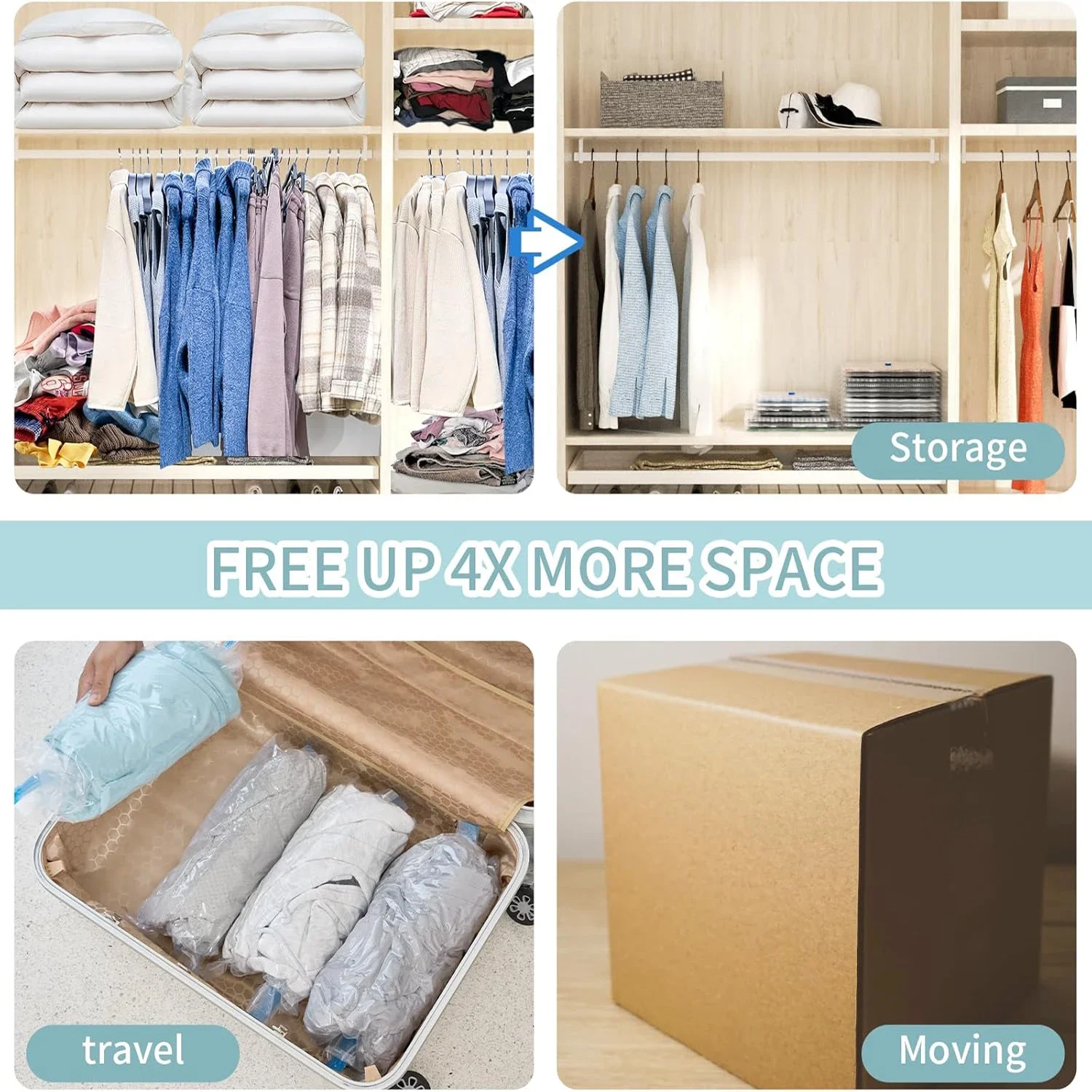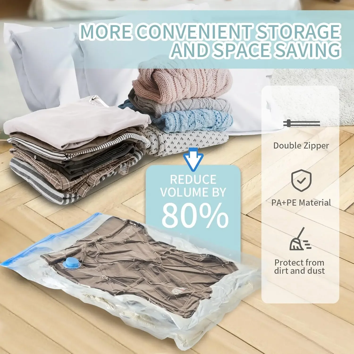 3/5 sacos de armazenamento a vácuo dos pces para roupas, cama, sacos de poupança de espaço pacote de vedação a vácuo de armazenamento, saco organizador comprimido dobrável - TopDealBox