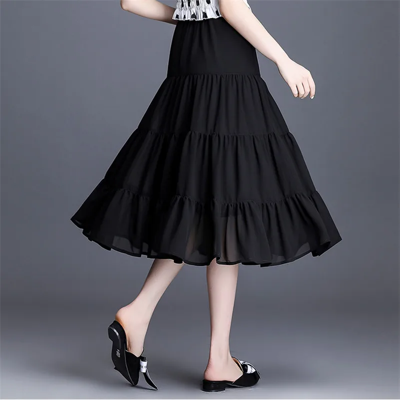 ↑ Saia Longa de Chiffon de Cintura Alta para Mulheres Verão 2026 Estilo Preppy Menina Doce Saia Sólida com Babados Casual Preta e Branca - TopDealBoxSaia maxi feminina de veludo evasê, cintura elástica, veludo, preto, longo, maxi, outono, inverno, moda, 2025, S-10XL feito sob encomenda