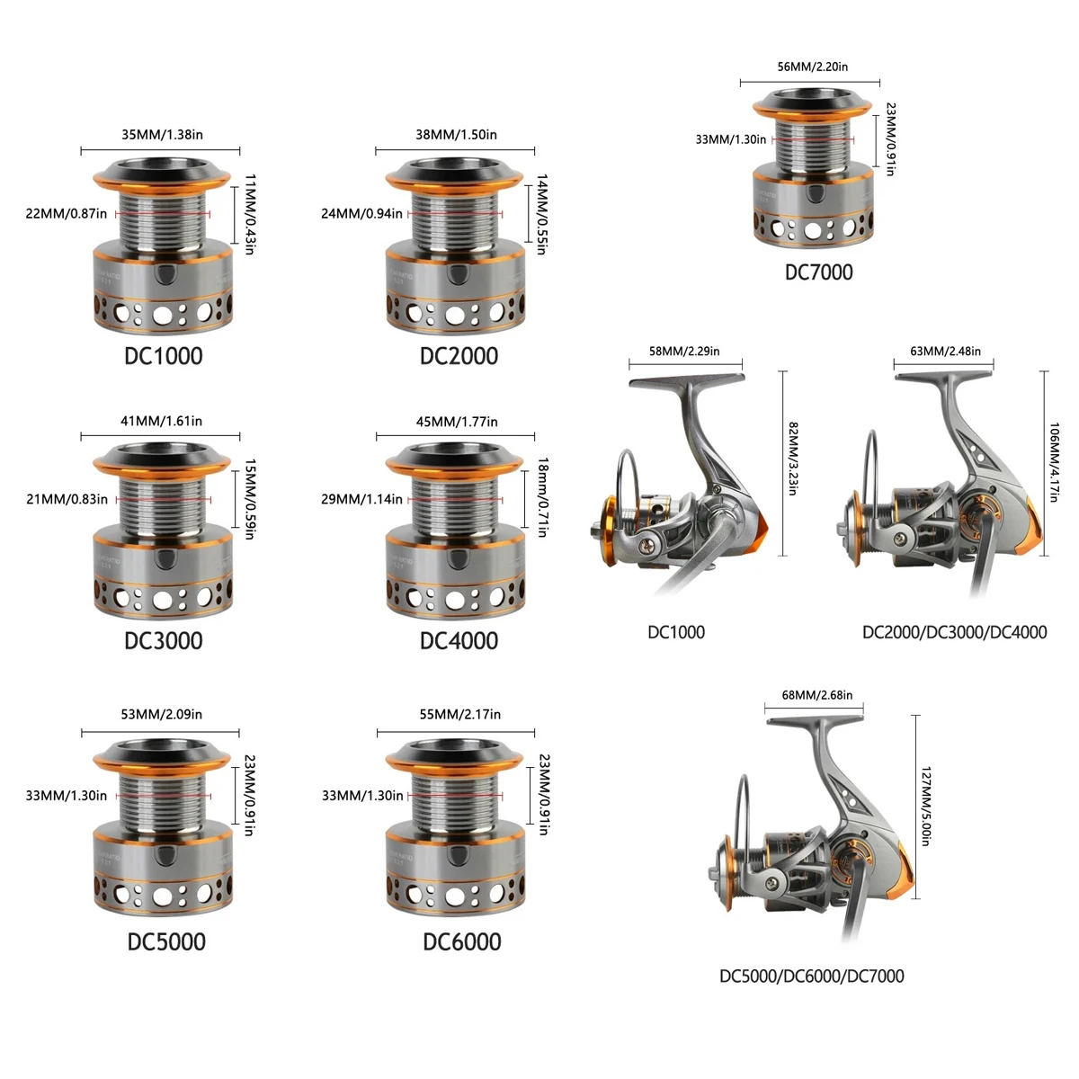 Série dc 1000 ~ 7000, relação de engrenagem 5.2:1, arrasto máximo de 26lb, carretel de metal cnc, carretel de pesca giratório, para ferramentas de pesca em água salgada de água doce