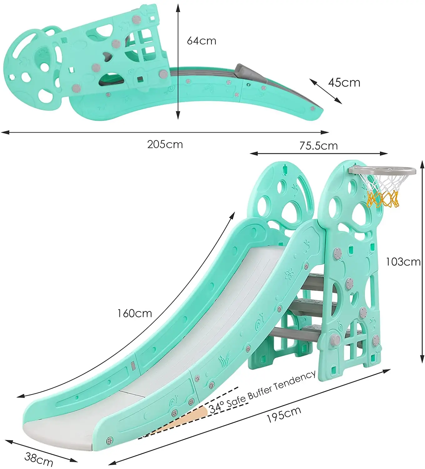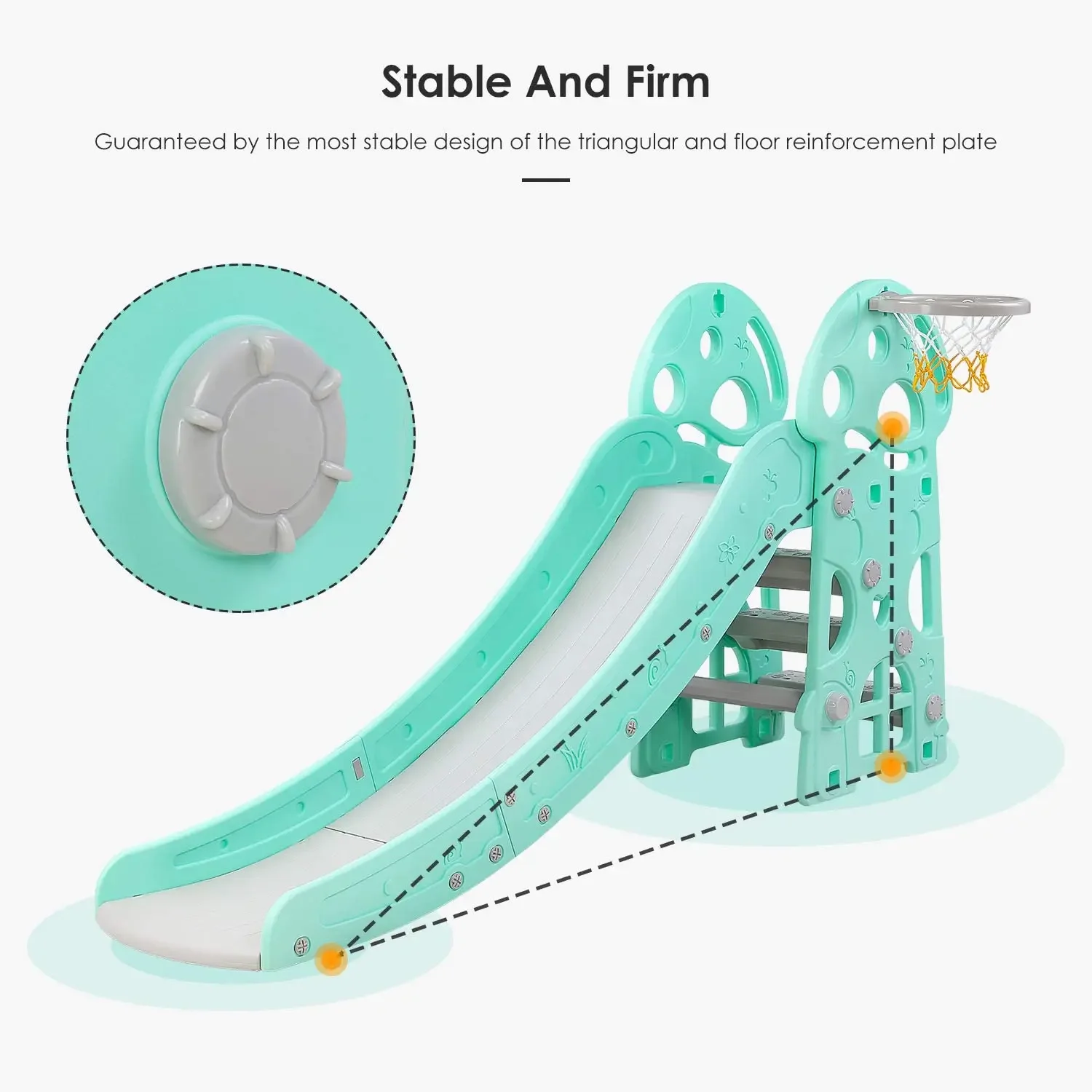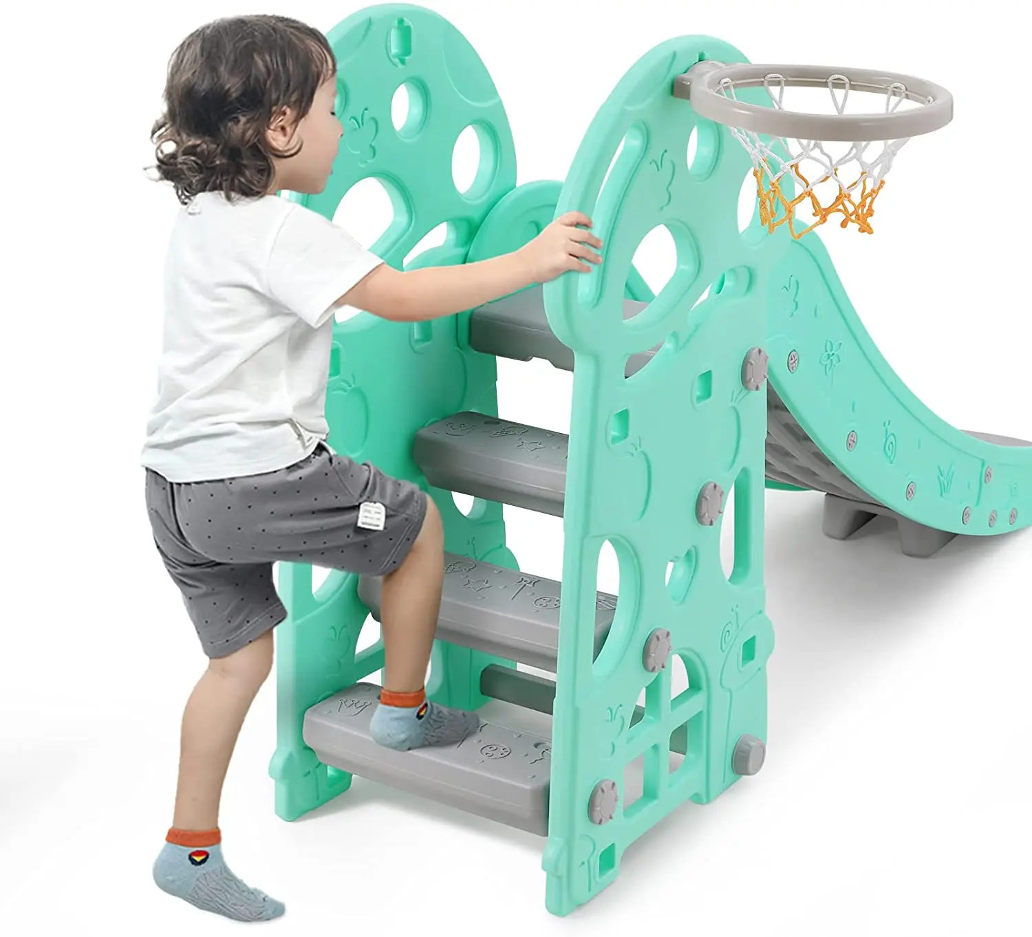 Slide infantil fácil configuração playset slide com cesta de basquete para crianças interior ao ar livre jardim quintal brinquedo fácil de armazenar - TopDealBox