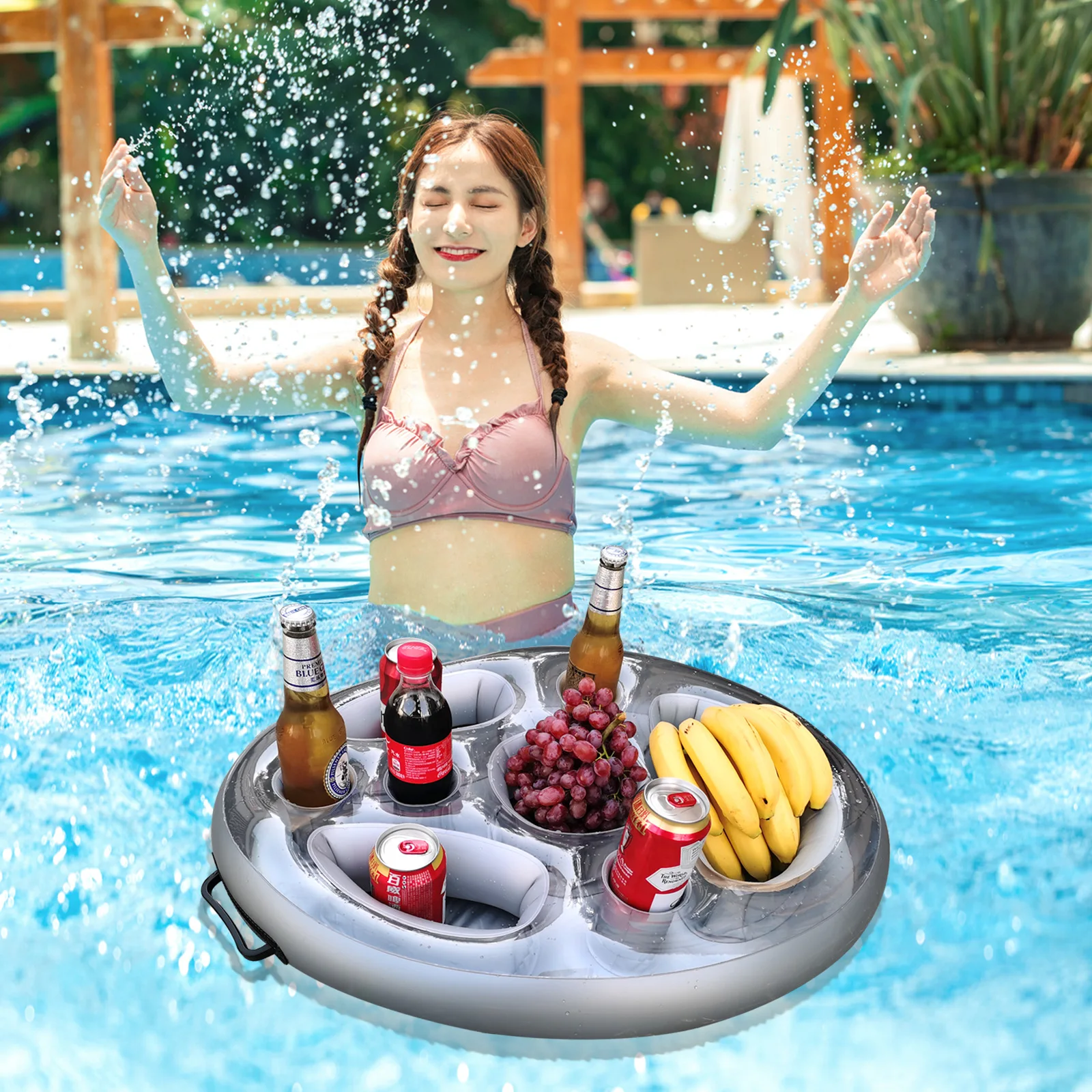 Suporte de bebidas infláveis Suporte de copo de água do telefone móvel Colar Cup Almofada Inflável Fruta, Cama de gelo, Piscina, Vinho Tinto, 1PVC | Melhor Preço at TopDealBox