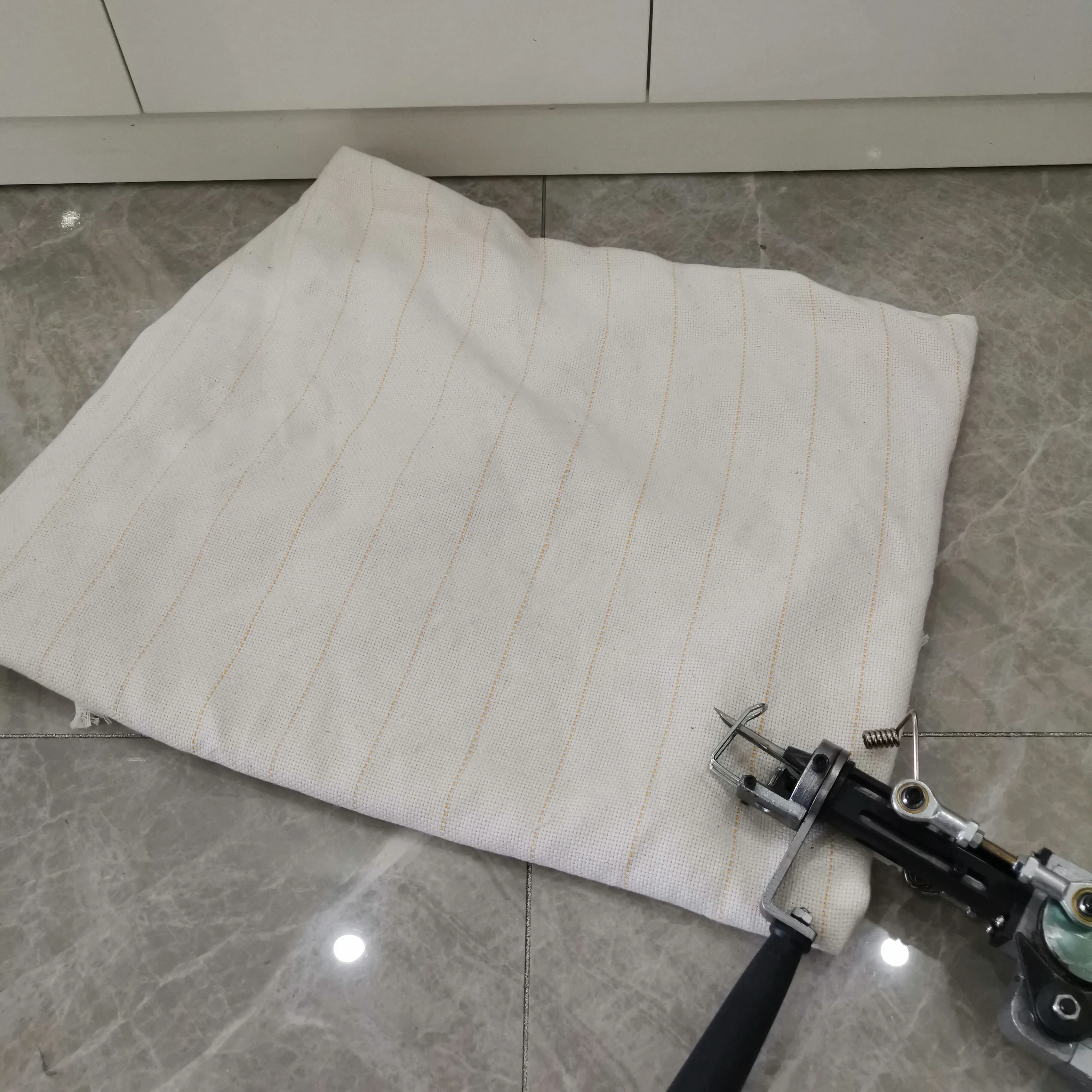 Início > Melhorias domésticas > Materiais de construção Tecido de apoio de tecido para arma de tufos de poliéster para usar pistolas de tufos de tapete (1,5m x 4m) fundo bege linha de poliéster resistência a manchas Informações de envio