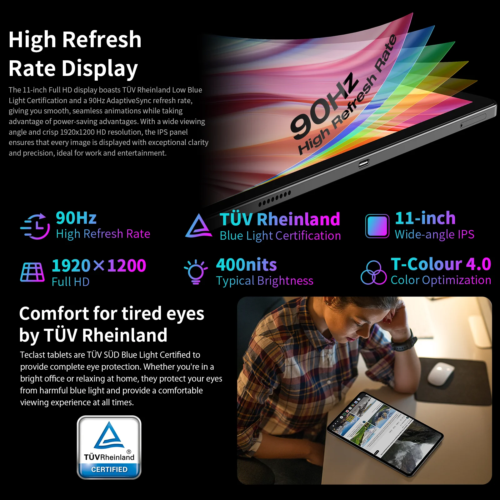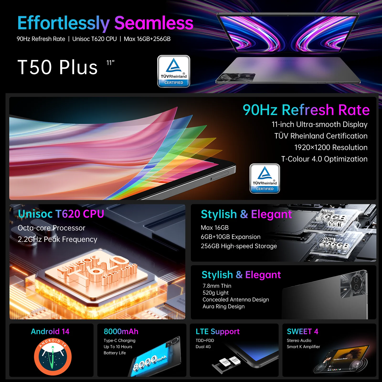 ♡Visualização rápidaTeclast-T50Max Android 14 Tablet 11, Taxa de Atualização 90Hz, 20GB RAM, 256GB ROM, CPU Helio G99, 8000mAh, Carregamento Rápido 18W, 4G LTE, GPS174.10 EUREUR 470.55Quente★★★★★★4.8