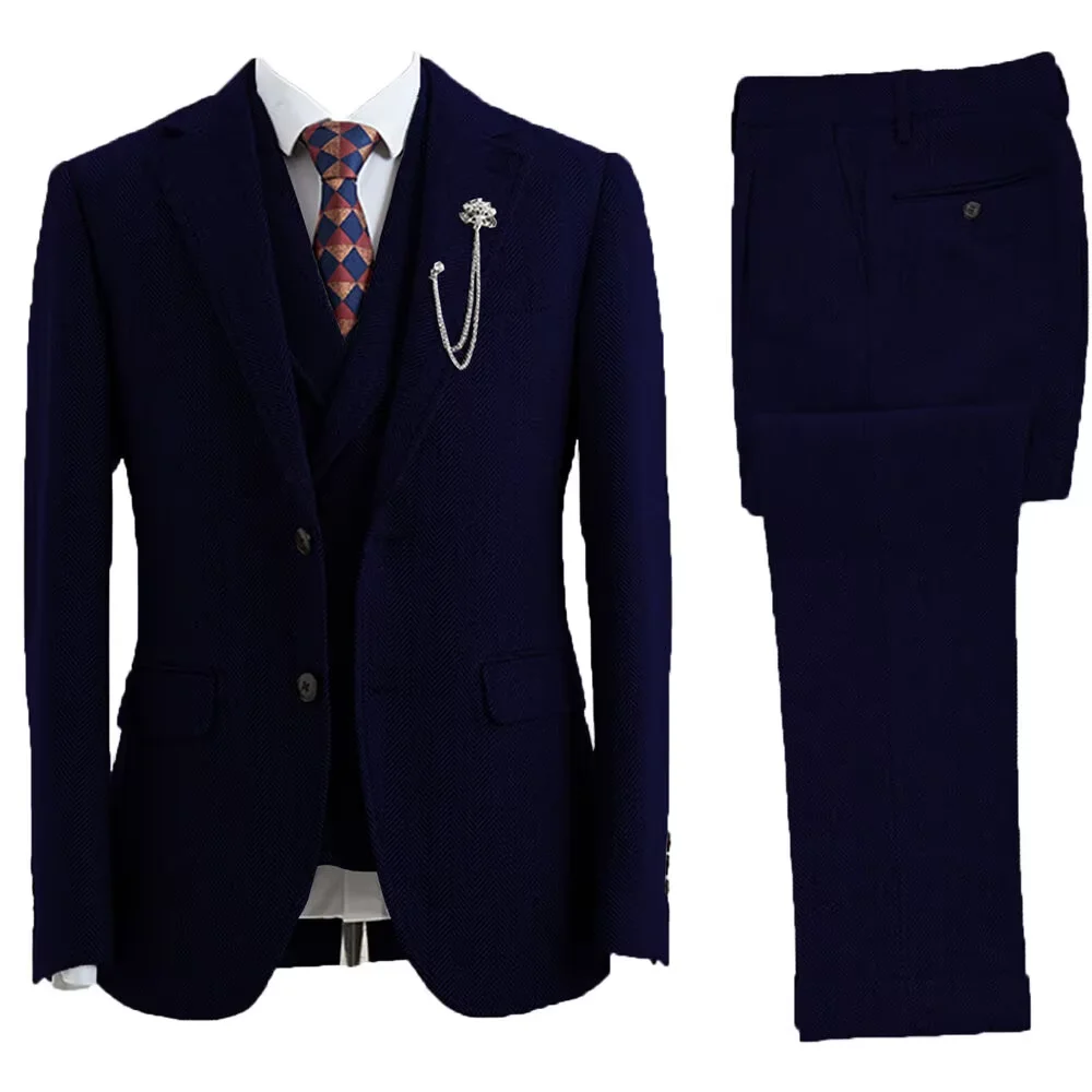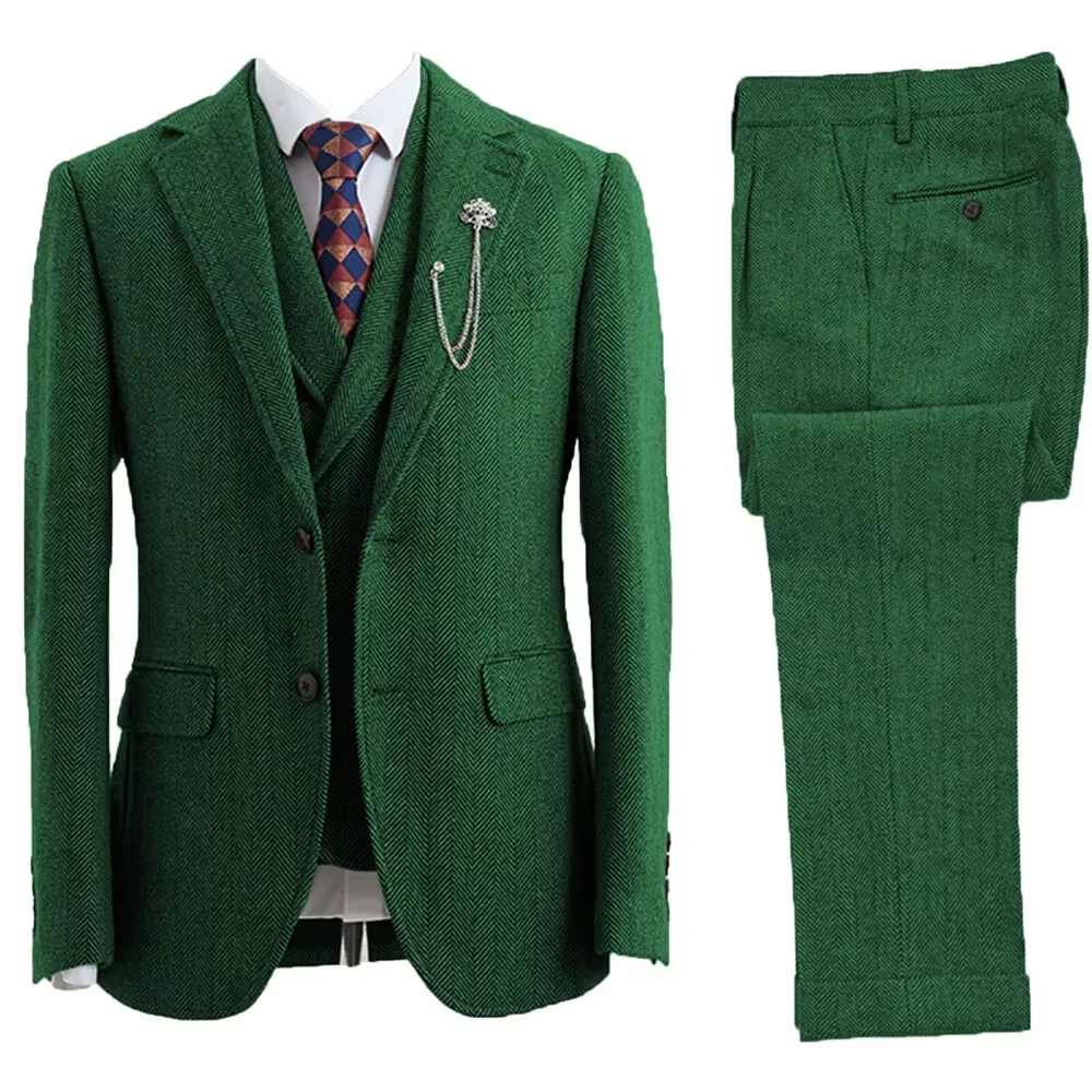 Terno trespassado de Tweed para homens, Smoking Espinha, Smoking de casamento, roupas de tamanho 3 pcs - TopDealBox
