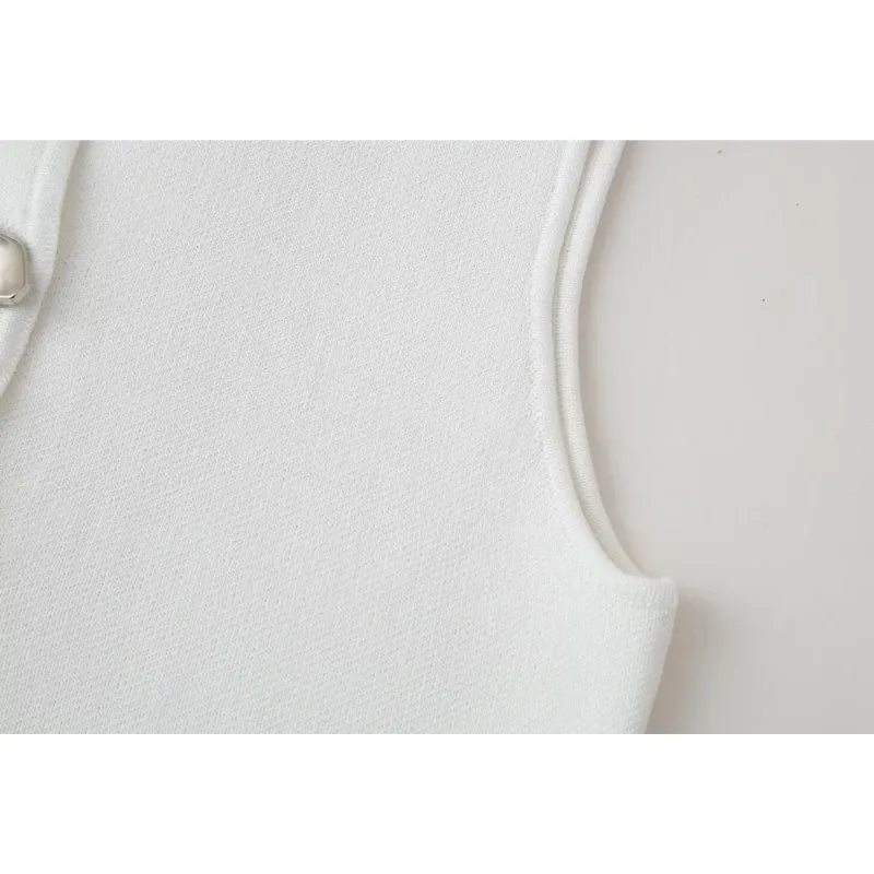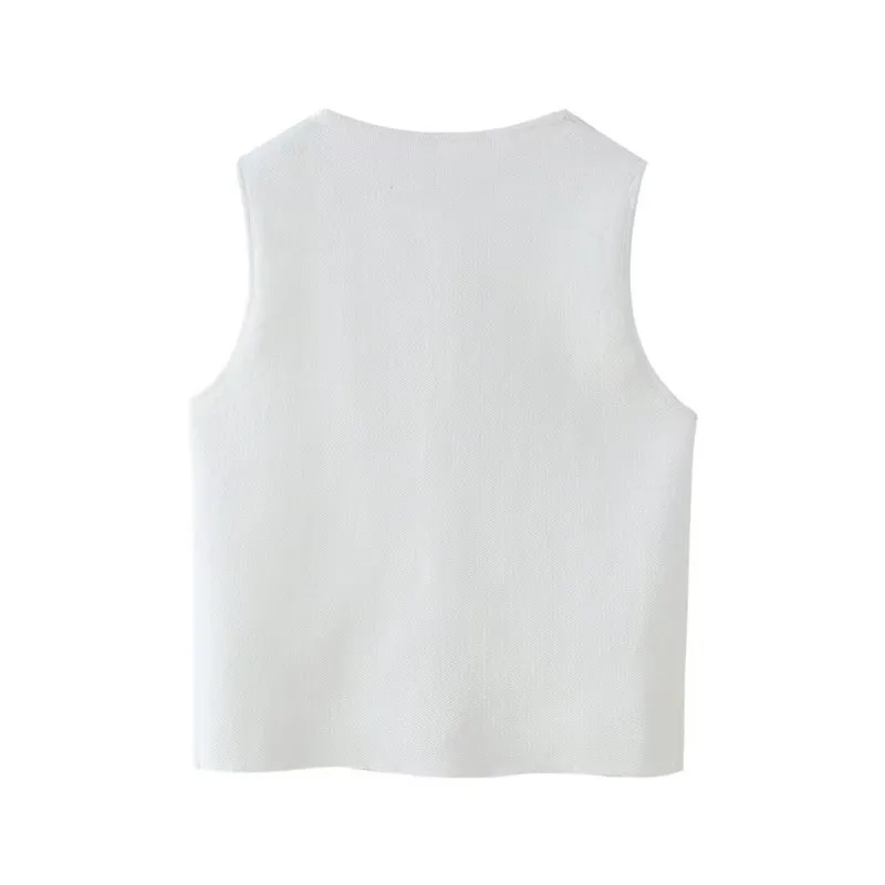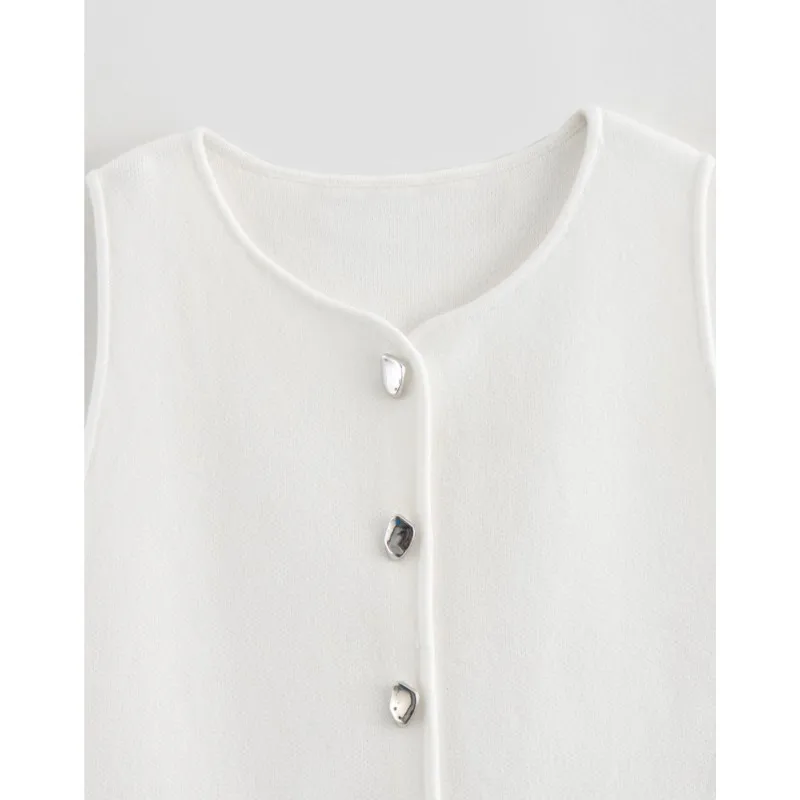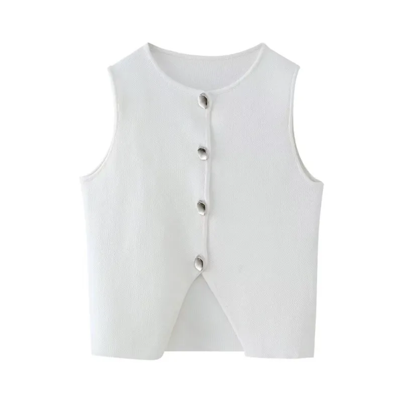 Top feminino de malha sem mangas, colete curto, gola em O, botão, ocidental, estilo de rua, sexy, primavera, verão, tops femininos - TopDealBox