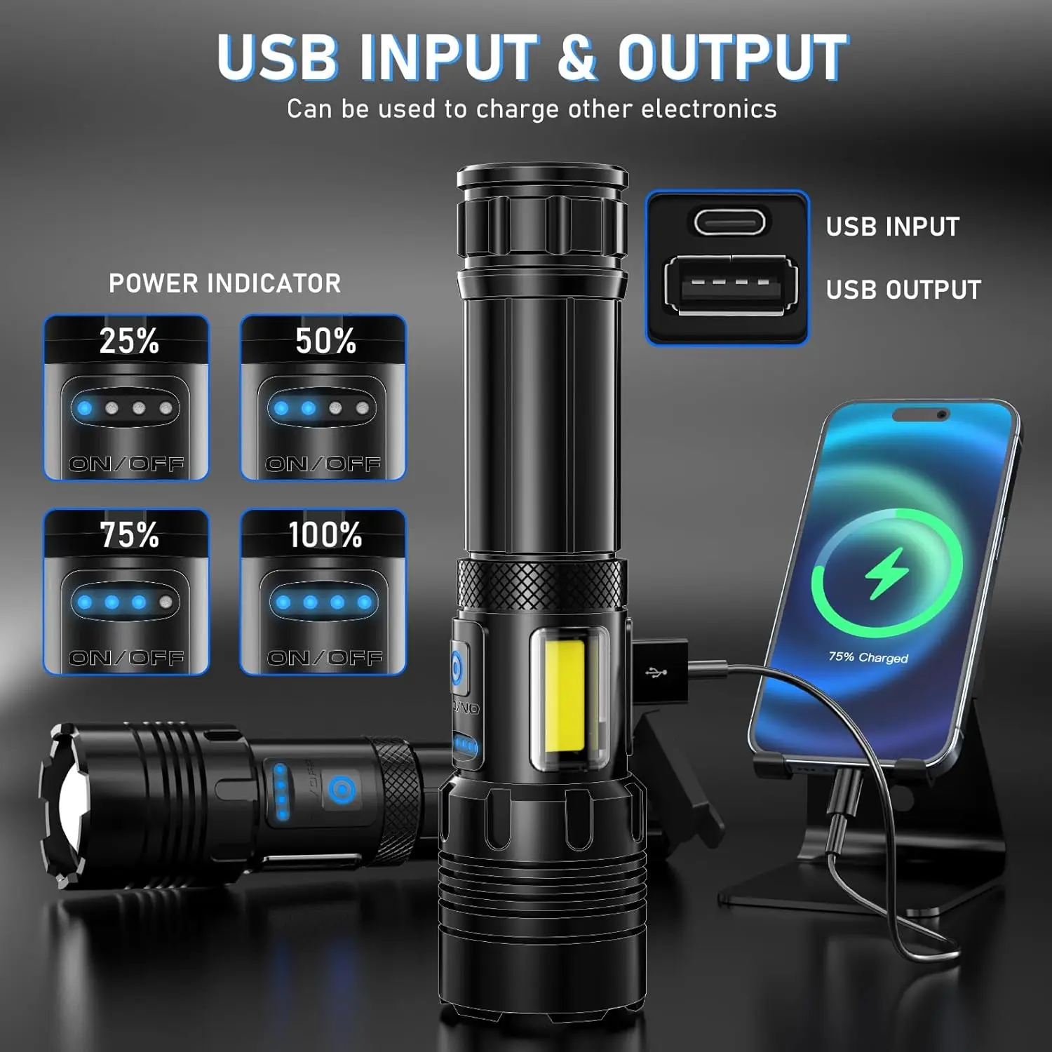 ♡Visualização rápidaForte Poder Lanternas LED, Tocha Tática, Display Luz, Carregamento USB, Camping, Pesca, Lanterna Zoom de Emergência, 2000LM, Alta3.88 EUREUR 64.94Quente★★★★★★4.9