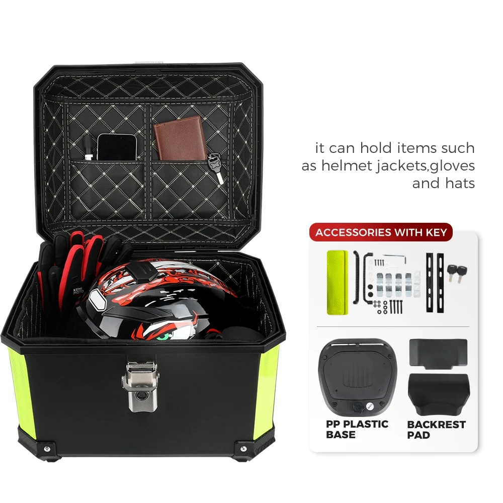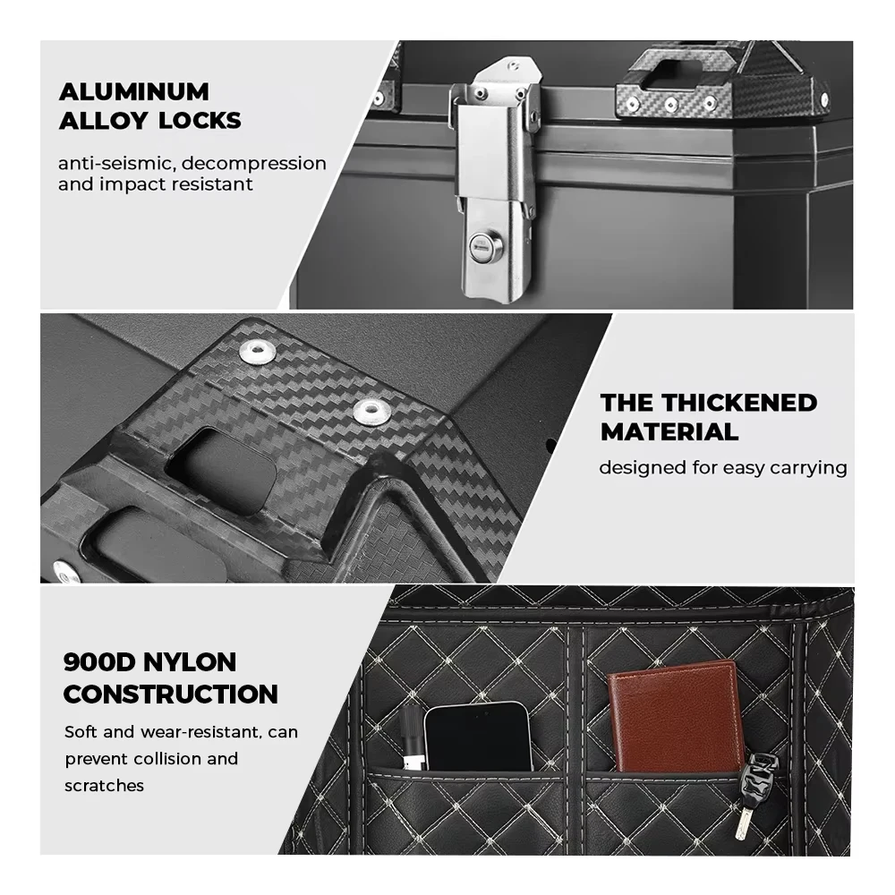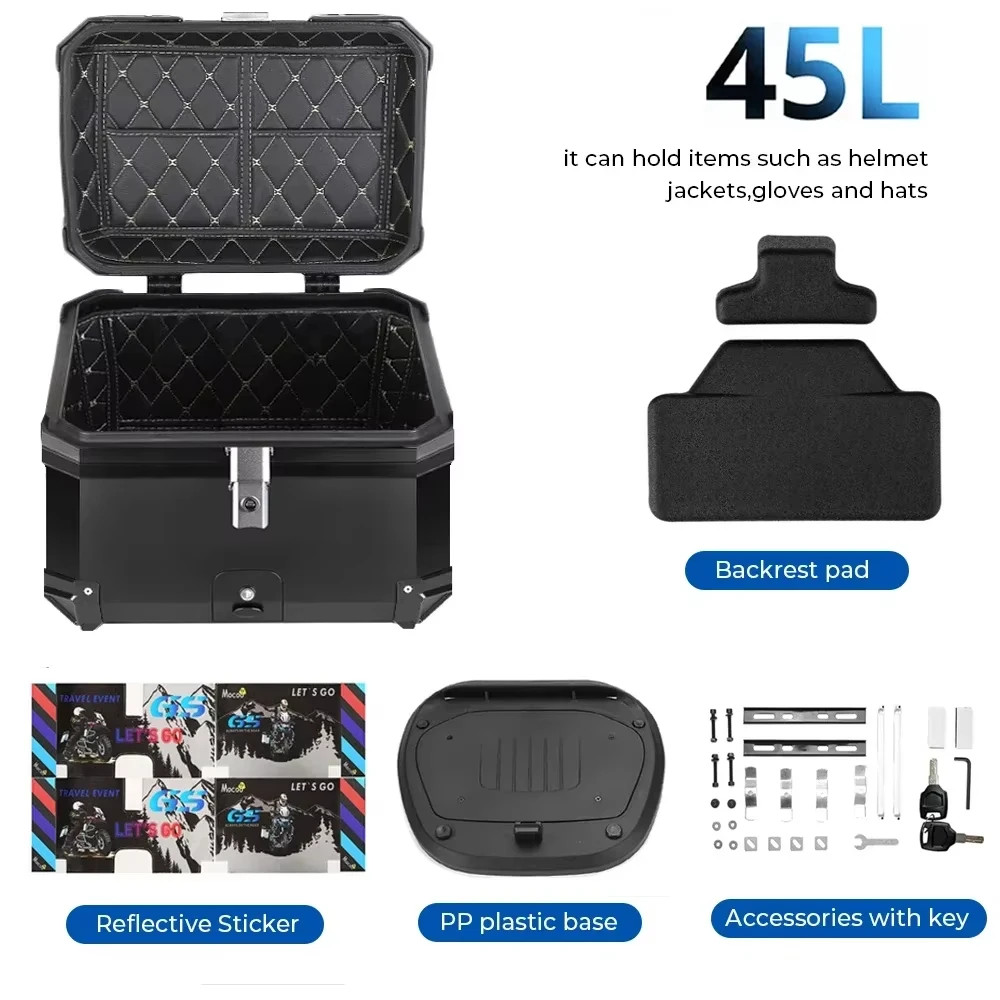 Universal Motocicleta Capacete Caixa, Cauda Superior de Alumínio, Bagagem Traseira, Armazenamento Tool Cases, Trava Tronco para Yamaha, Honda, BMW, 57L - TopDealBox