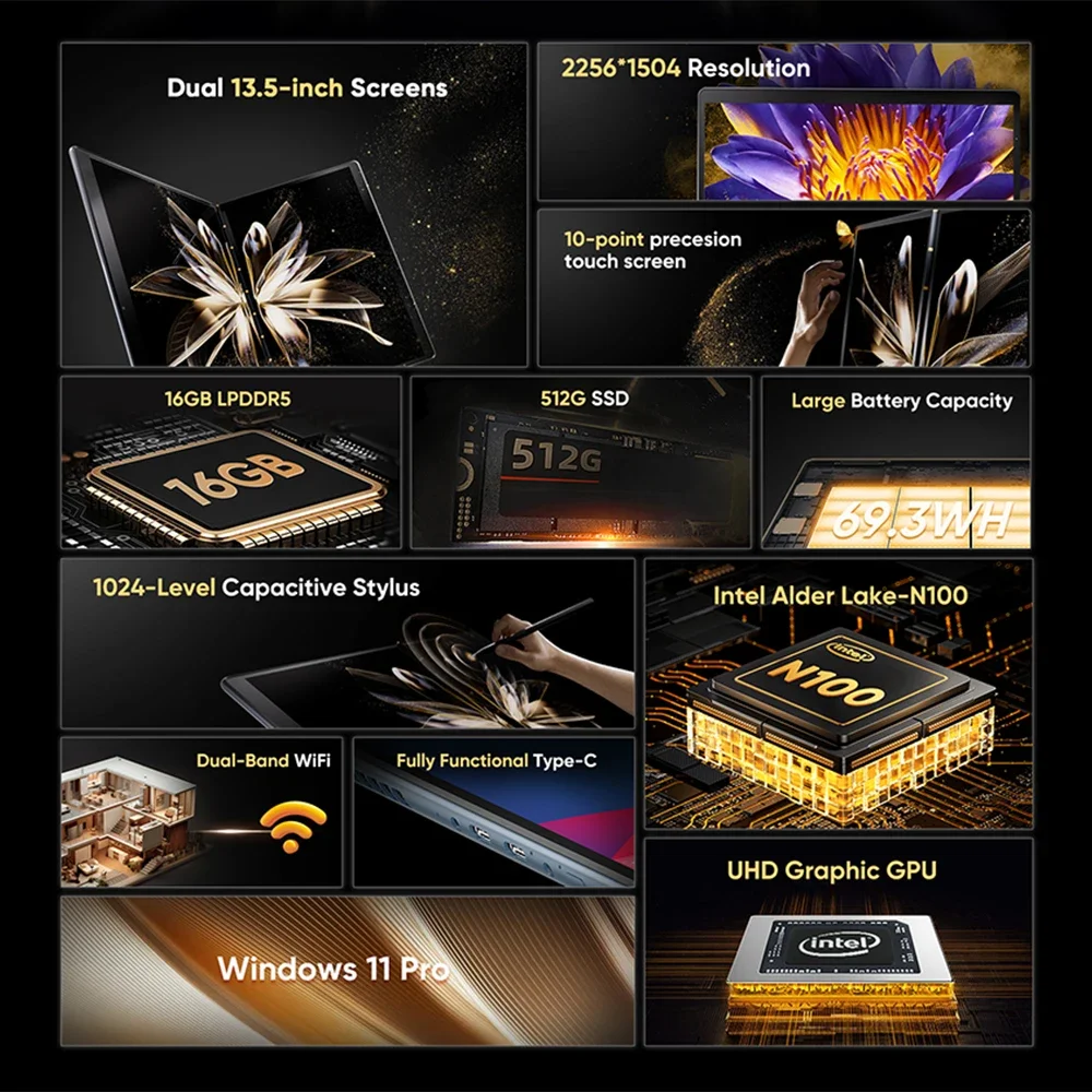 ↑VENDA QUENTE N-one NBook air Windows 11 Intel N100 Dual 13.5 polegadas Dual Touch Screen 2 em 1 Laptop 16GB + 512GB computador - TopDealBoxLaptop All-One com Windows 11Pro, Ryzen 9, 6900HX, 15,6 pol., FHD, 32 GB DDR5, SSD 1TB, 2560 × 1440, Computador Notebook, até 4,9 GHz