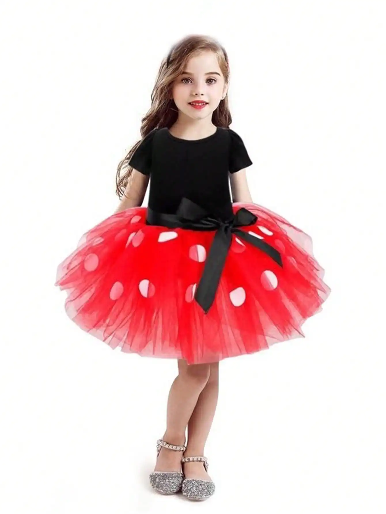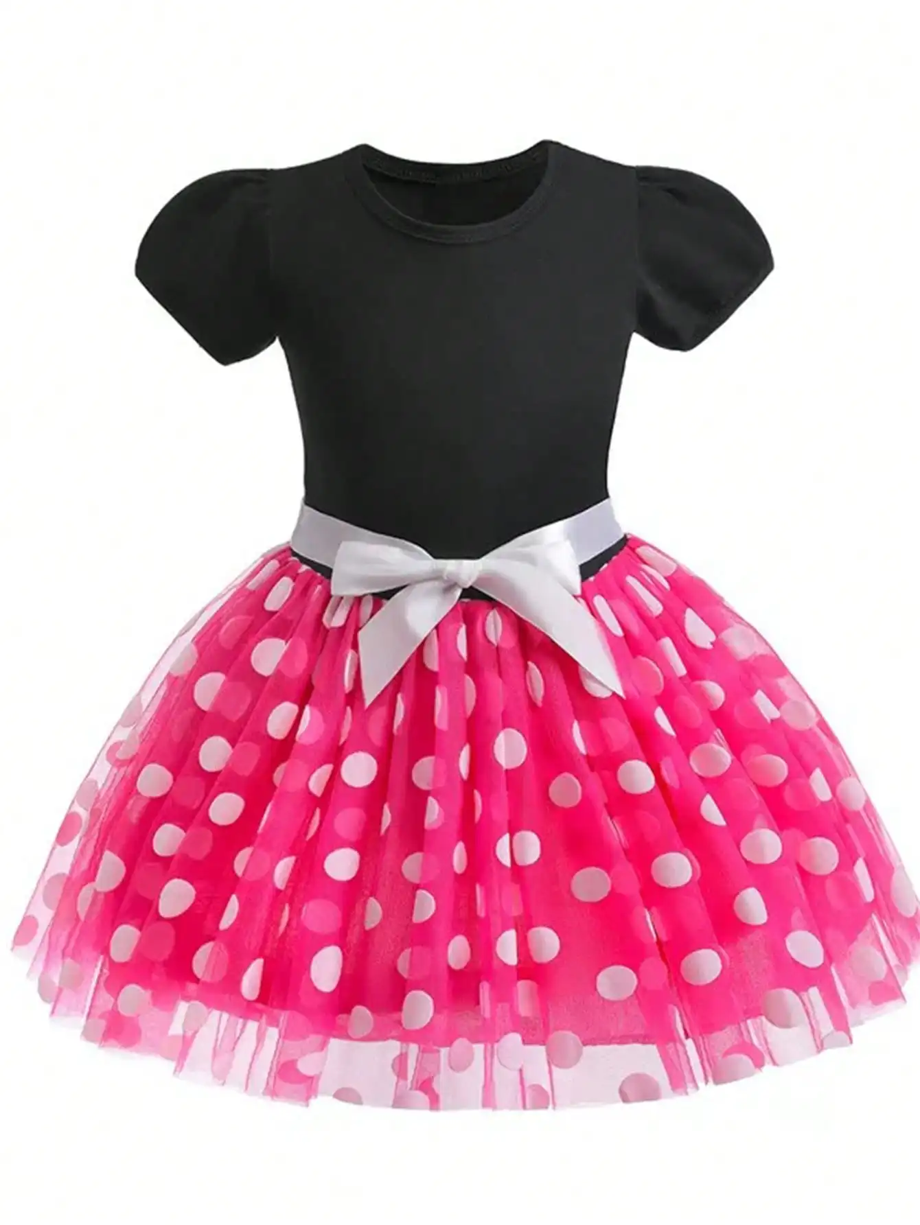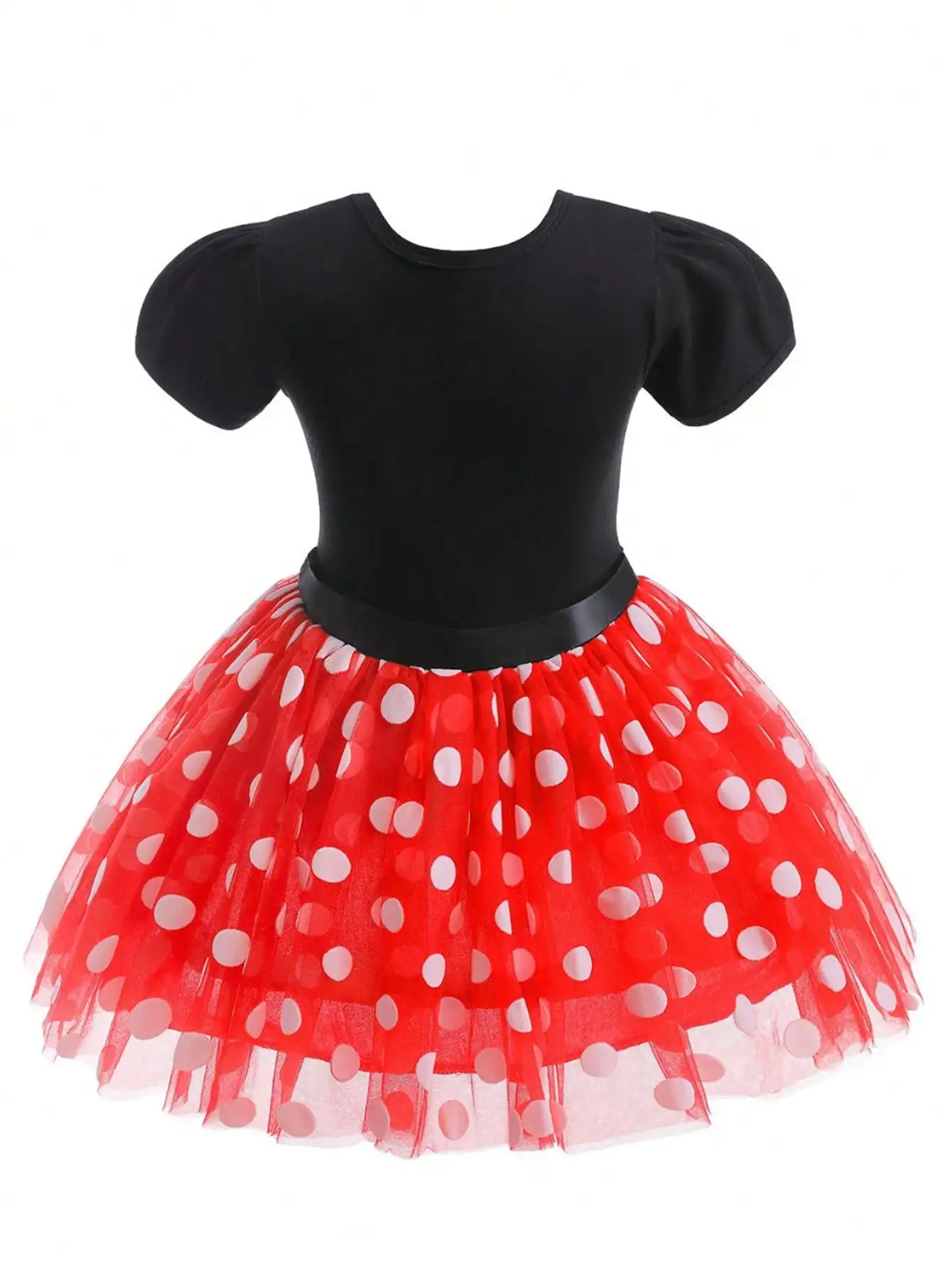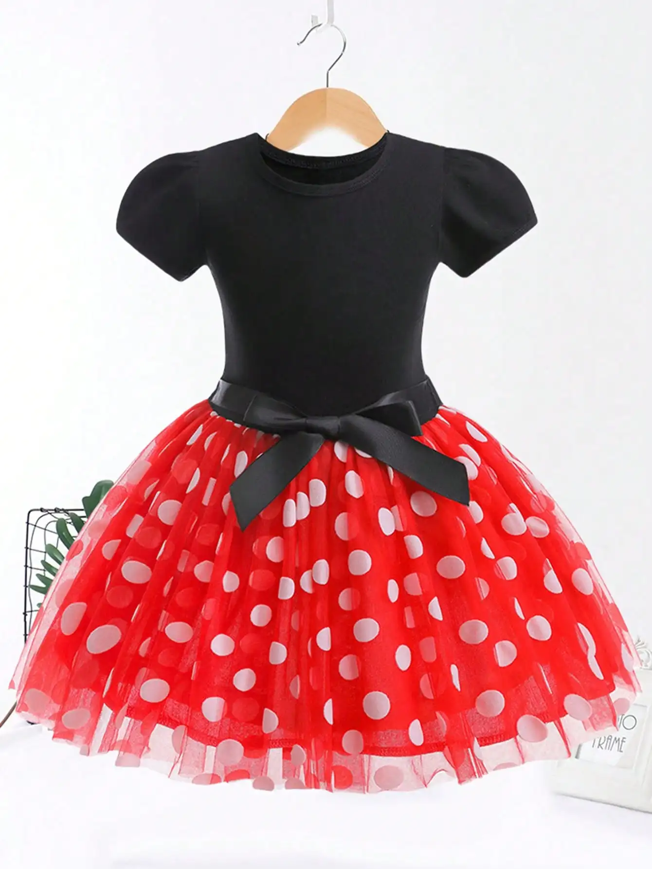 Vestido de verão para meninas, vestido de mouse, vestido de natal, ano novo, carnaval, festa de feriado, bonito, estampa de bolinhas, vestido de manga curta - TopDealBox