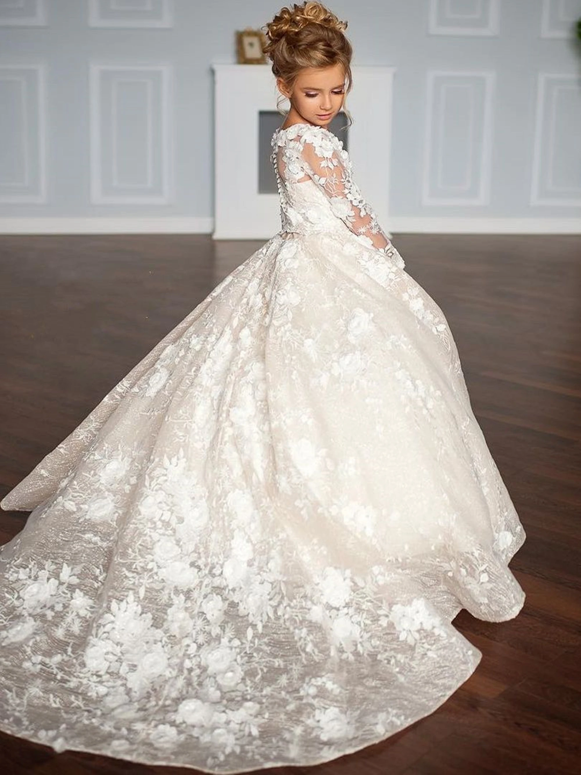 ♡Visualização rápidaBABYONLINE Vestidos florais de manga comprida para convidados de casamento, dama de honra infantil com laço branco marfim renda tule primeira comunhão34.17 EUREUR 568.27Quente★★★★★★4.8