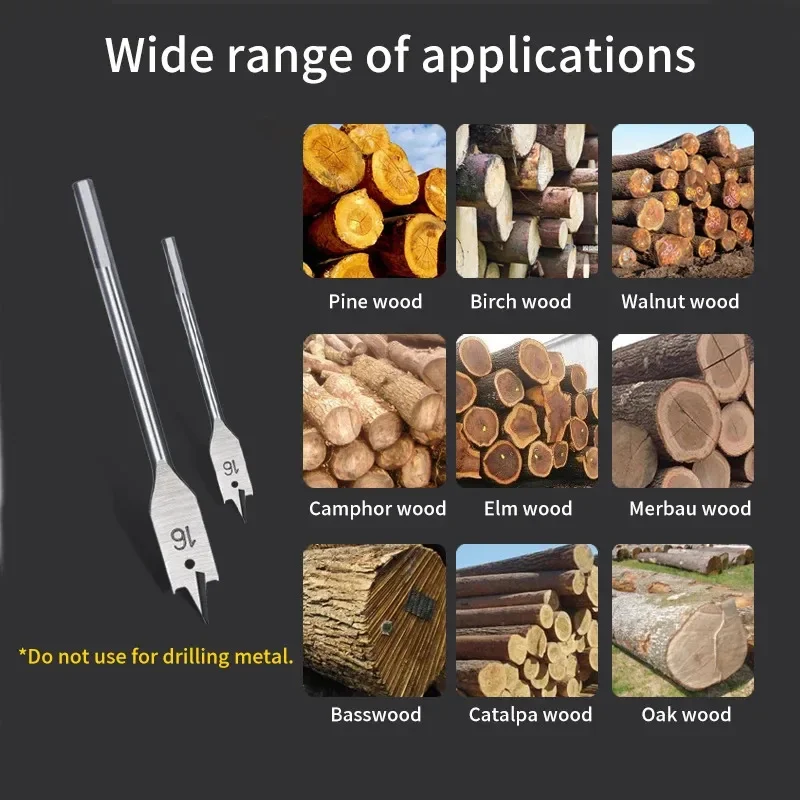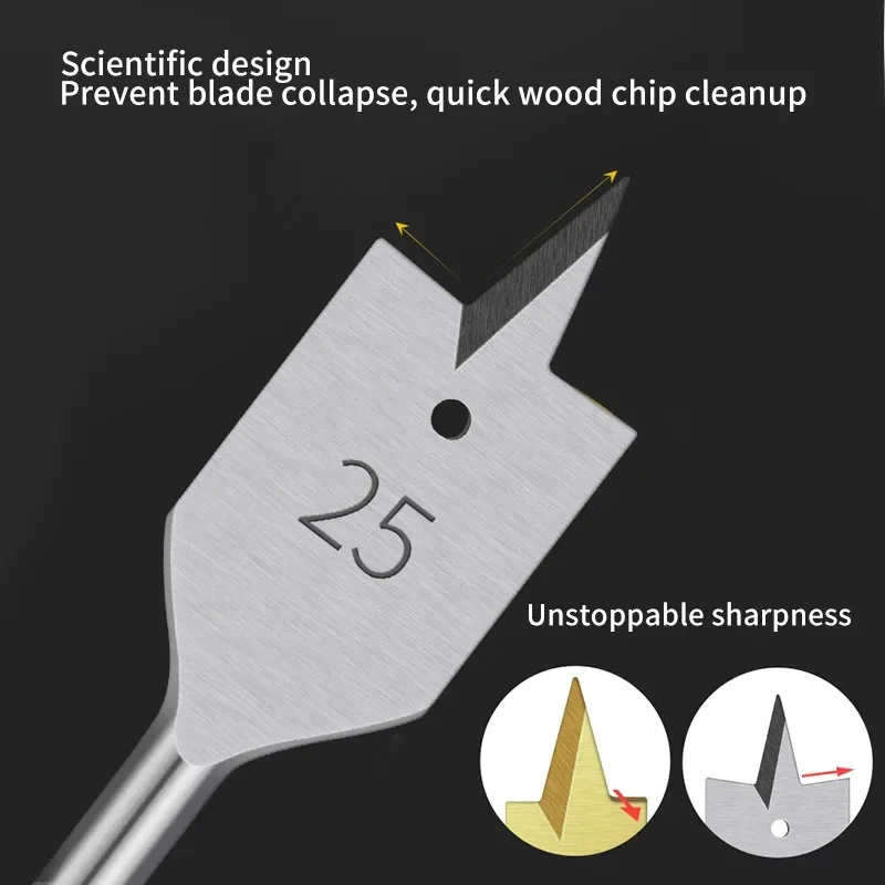 Conjunto de brocas planas de três pontos para carpintaria, fechadura de porta de gaveta, ferramenta chata, placa de madeira, combinação ampliadora de buraco de broca plana - TopDealBox