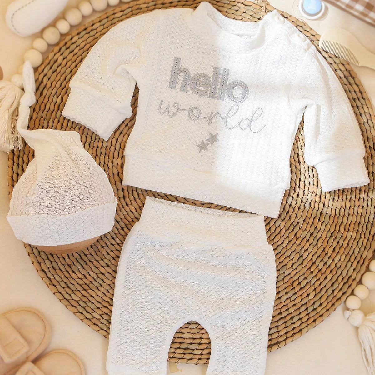 Ylsteed "olá" bordado adereços para fotografia de recém-nascidos macacão infantil com chapéu de arco roupa para bebê chegando em casa presente para foto de bebê - TopDealBox
