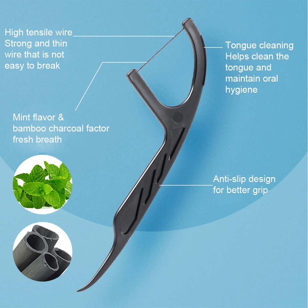 Jnsur palheta de fio dental, palito de carvão de bambu, limpeza dos dentes, fio dental orgânico, bastão de dentes pretos, hilo dental - TopDealBox